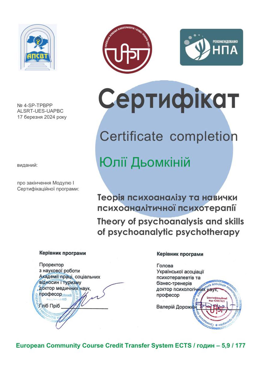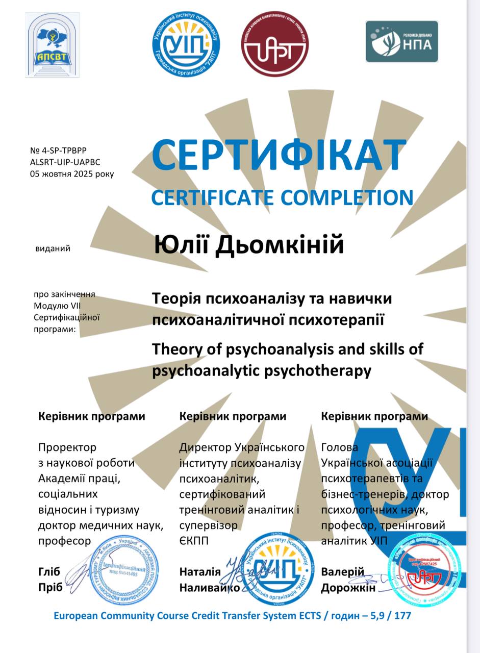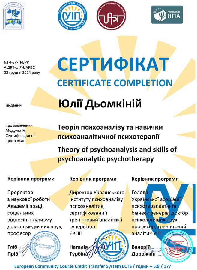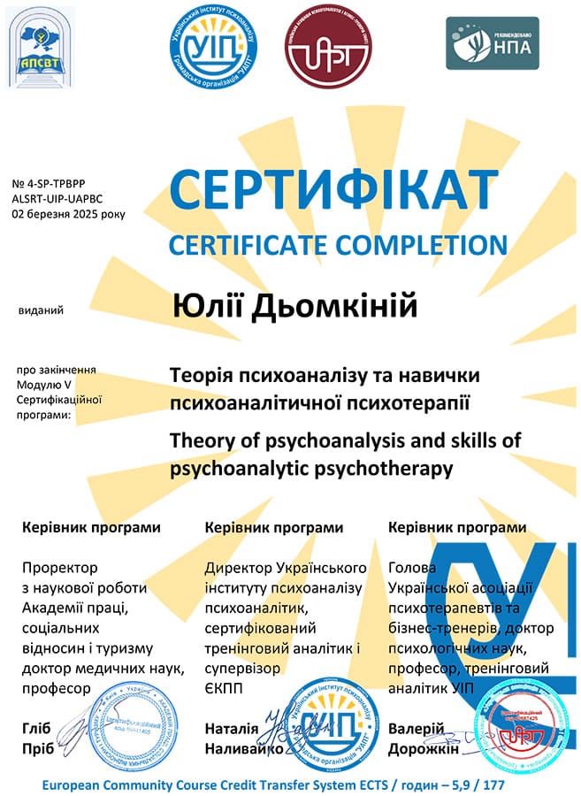 Здебільшого я використовую психодинамічний підхід, позитивні результати клієнтів говорять самі за себе.